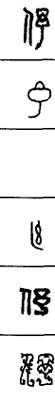 从上到下依次是小篆、甲骨文、金文、古玺及战国文字、缪篆及汉代文字、鸟虫篆。
