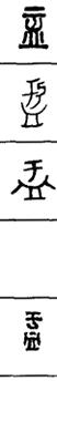从上到下依次是小篆、甲骨文、金文、古玺及战国文字、缪篆及汉代文字、鸟虫篆。
