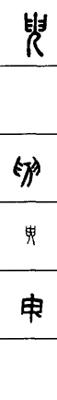从上到下依次是小篆、甲骨文、金文、古玺及战国文字、缪篆及汉代文字、鸟虫篆。