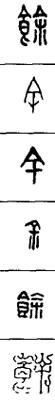 从上到下依次是小篆、甲骨文、金文、古玺及战国文字、缪篆及汉代文字、鸟虫篆。