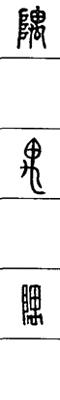 从上到下依次是小篆、甲骨文、金文、古玺及战国文字、缪篆及汉代文字、鸟虫篆。