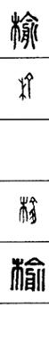 ,13画。榆树,落叶乔木。高可达20多米,叶子卵形,花有短梗,有的种子结翅果,呈倒卵形,叫榆钱,木材可供建筑或制器具用