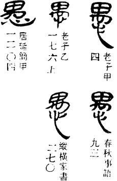 从上到下依次是小篆、甲骨文、金文、古玺及战国文字、缪篆及汉代文字、鸟虫篆。