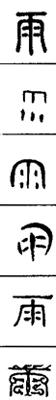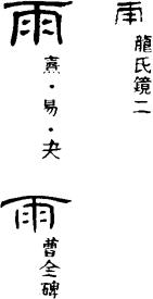【说明】“雨”为象形字,像下雨形。参附录三。