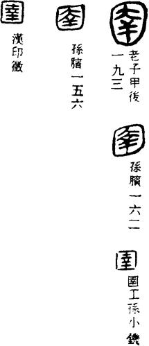 从囗,象拘人於囹圄之形。隸作圉,《廣韻》魚巨切,魚部疑紐。然從意義來看,此字多讀為執。《前》七·一九·二:“……五日丁未在