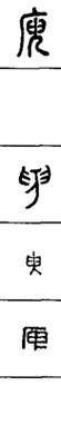 从上到下依次是小篆、甲骨文、金文、古玺及战国文字、缪篆及汉代文字、鸟虫篆。