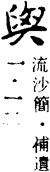 (二)通“于(於)”yú,音近又草写形近。 李瓶儿见他妆饰少次與众人。(十四9上4)两个说话中间到與西门庆门首。(八六9下11)