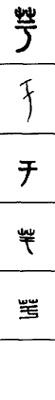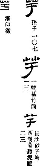 从上到下依次是小篆、甲骨文、金文、古玺及战国文字、缪篆及汉代文字、鸟虫篆。