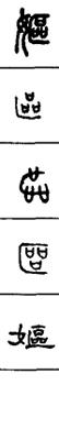 从上到下依次是小篆、甲骨文、金文、古玺及战国文字、缪篆及汉代文字、鸟虫篆。
