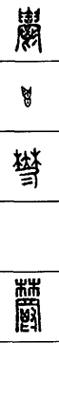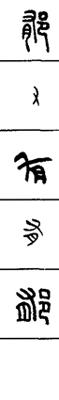 从上到下依次是小篆、甲骨文、金文、古玺及战国文字、缪篆及汉代文字、鸟虫篆。