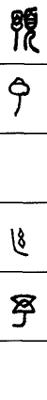 从上到下依次是小篆、甲骨文、金文、古玺及战国文字、缪篆及汉代文字、鸟虫篆。