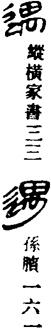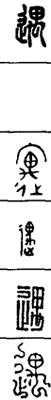 从上到下依次是小篆、甲骨文、金文、古玺及战国文字、缪篆及汉代文字、鸟虫篆。