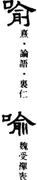 ㈠yù ①晓喻;开导。《礼记·学记》:“可谓善喻矣。”②通晓;了解。《论语·里仁》:“君子喻于义,小人喻于利。”③比喻。《孟子·梁惠王上》:“王好战,请以战喻。”④姓。