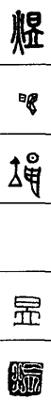 从上到下依次是小篆、甲骨文、金文、古玺及战国文字、缪篆及汉代文字、鸟虫篆。