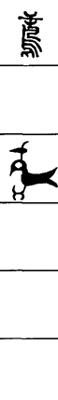 从上到下依次是小篆、甲骨文、金文、古玺及战国文字、缪篆及汉代文字、鸟虫篆。