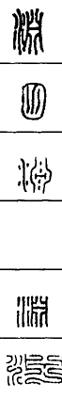 从上到下依次是小篆、甲骨文、金文、古玺及战国文字、缪篆及汉代文字、鸟虫篆。