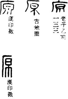 【说明】“原”为会意字,从厂(山崖)从泉,表示泉水从石崖下流出。参附录三。