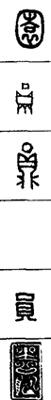 从上到下依次是小篆、甲骨文、金文、古玺及战国文字、缪篆及汉代文字、鸟虫篆。