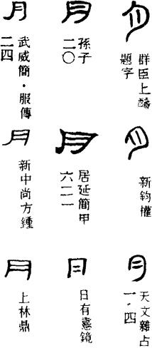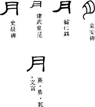 〈辨〉月字甲骨文象月亮不圆时的形状;因为日字以圆形象,所以月字以阙形象。金文讹变,篆书更讹,楷书作月。月字用为偏旁,一般在左,一般表示跟月亮或时间有关的意思,偶尔也做声符◇注意:楷书中月字用为偏旁在左与肉字用为偏旁在左时形体混同,要认真分别。