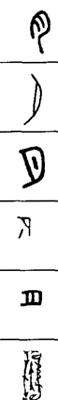 从上到下依次是小篆、甲骨文、金文、古玺及战国文字、缪篆及汉代文字、鸟虫篆。