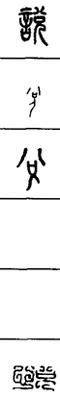 从上到下依次是小篆、甲骨文、金文、古玺及战国文字、缪篆及汉代文字、鸟虫篆。