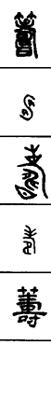 从上到下依次是小篆、甲骨文、金文、古玺及战国文字、缪篆及汉代文字、鸟虫篆。
