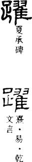 yuè 《广韵》:跳跃也,上也,进也。 以灼切 宕开三入药以