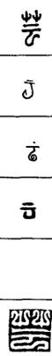 从上到下依次是小篆、甲骨文、金文、古玺及战国文字、缪篆及汉代文字、鸟虫篆。
