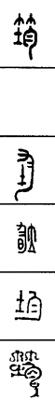 从上到下依次是小篆、甲骨文、金文、古玺及战国文字、缪篆及汉代文字、鸟虫篆。
