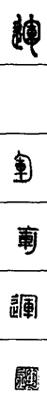 从上到下依次是小篆、甲骨文、金文、古玺及战国文字、缪篆及汉代文字、鸟虫篆。