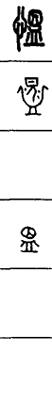 从上到下依次是小篆、甲骨文、金文、古玺及战国文字、缪篆及汉代文字、鸟虫篆。
