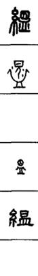 从上到下依次是小篆、甲骨文、金文、古玺及战国文字、缪篆及汉代文字、鸟虫篆。