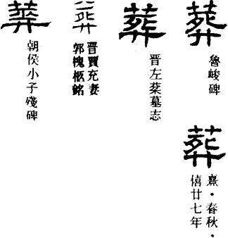 【说明】“葬”为会意字,表示人死后用草覆盖起来埋葬。参附录三。