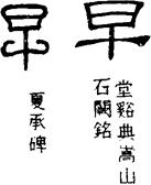 〈辨〉早字篆书从日在甲上,当时人认为甲象人头,太阳升到人头上时即是早晨。楷书讹变作早。