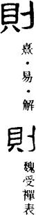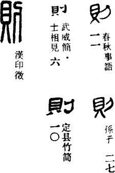 金文则字从鼎从刀,表示用刀把文字刻在铜器上的意思。小篆则字的鼎形简化讹变成贝,从贝从刀,则无从会意。由于铜器上刻的文字内容非常重要,故则字含有法则、规则的意思;引申指法典、规章、模范、榜样等。则字还可用作动词,有效法的意思。