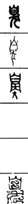 从上到下依次是小篆、甲骨文、金文、古玺及战国文字、缪篆及汉代文字、鸟虫篆。