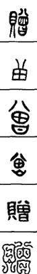 从上到下依次是小篆、甲骨文、金文、古玺及战国文字、缪篆及汉代文字、鸟虫篆。