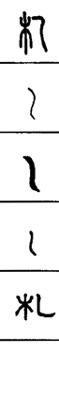 从上到下依次是小篆、甲骨文、金文、古玺及战国文字、缪篆及汉代文字、鸟虫篆。