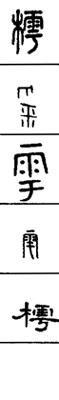 从上到下依次是小篆、甲骨文、金文、古玺及战国文字、缪篆及汉代文字、鸟虫篆。