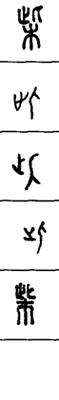 从上到下依次是小篆、甲骨文、金文、古玺及战国文字、缪篆及汉代文字、鸟虫篆。