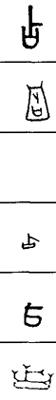 从上到下依次是小篆、甲骨文、金文、古玺及战国文字、缪篆及汉代文字、鸟虫篆。