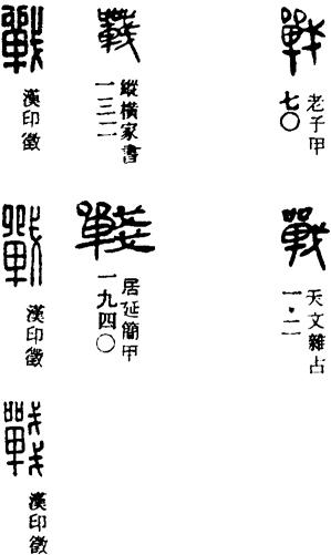战字从单(單)从戈,单本是一种捕猎工具,也可用作杀敌武器,而戈则是一种常用的兵器。“单”与“戈”结合,表示干戈相向、兵戎相见,所以战的本义指两军交战,即战争、战斗之义,泛指比优劣、争胜负。