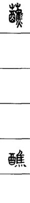 从上到下依次是小篆、甲骨文、金文、古玺及战国文字、缪篆及汉代文字、鸟虫篆。