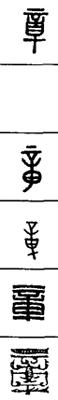 【说明】“章”为会意字,由“音”和“十”(一位数的终结)组成,表示一曲音乐终止的意思。