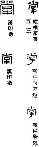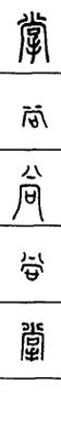 从上到下依次是小篆、甲骨文、金文、古玺及战国文字、缪篆及汉代文字、鸟虫篆。