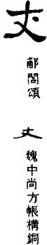 〈辨〉丈字篆书上从十下从又,示又持十之意。从十,因为一丈十尺。从又,因为周时尺短,一丈约略相当于一个成年男子的身高,而人的身高又相当于人两臂左右平伸时两手间的距离,又即手。