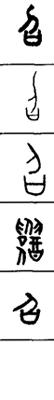 从上到下依次是小篆、甲骨文、金文、古玺及战国文字、缪篆及汉代文字、鸟虫篆。