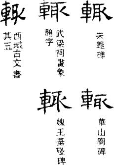 zhé 《广韵》:专辄。说文曰,车相倚也。 陟葉切 咸开三入葉知