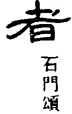 者士。”泰山刻石:“者産得宜。”詛楚文:“(率)者侯之兵。”馬王堆帛書《老子》甲本卷後古佚書《五行》:“其人它(施)者人也者,如文王之它者弘夭、散宜生也。其人它者人,不得其人不為法。”又傳世有越王者九鐘(《三代》一·三九·二~四〇·一),郭沫若《者九鐘銘考釋》云“者九”即越王翳之太子“諸咎”。《史記·越王句踐世家》:“王翳卒,王子侯立。”索隱引《紀年》云:“三十六年七月,太子諸咎弑其君翳。”又子犯編鐘:“者楚荆不聖(聽)令(命)于王所……子凫(犯)