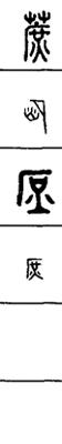 从上到下依次是小篆、甲骨文、金文、古玺及战国文字、缪篆及汉代文字、鸟虫篆。